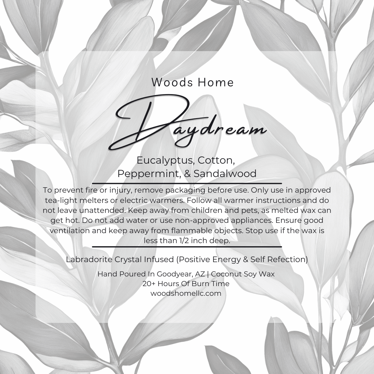 Daydream is a calming blend of airy florals, fresh mint, and soft musk—crafted to ease the mind and reset your energy. Crisp peppermint and eucalyptus awaken the senses, while gardenia and hyacinth create a light floral heart. A grounding base of sandalwood, cotton, and ylang ylang brings warmth and serenity. It’s a breath of fresh air in wax melt form.